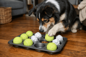 Ten to fifteen minutes of focused mental engagement can be as tiring as a long walk. When winter limits physical activity, indoor dog enrichment becomes the primary outlet, not a replacement.